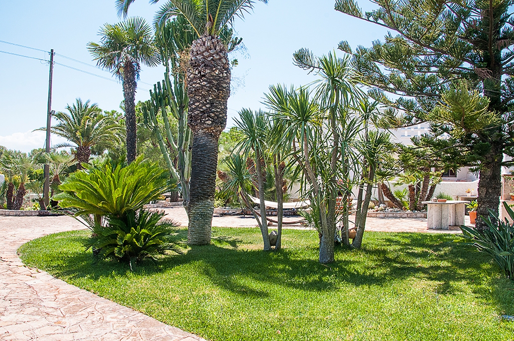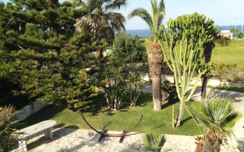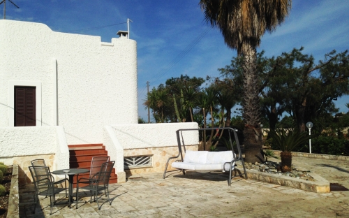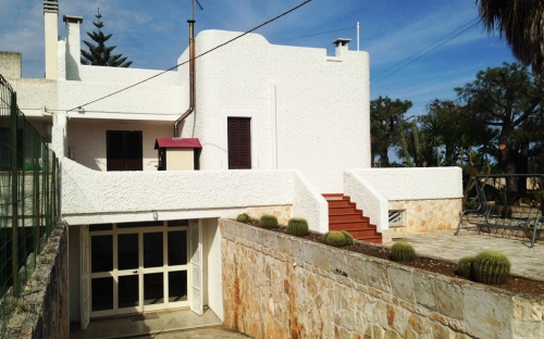 A few metres from the sea in Capitolo, Monopoli, independent villa of approx. 90 m2. Consists of sitting/dining room with fitted kitchen, bathroom, two bedrooms. Large furnished external paved area. Splendid panorama from the well-tended private and enclosed garden.