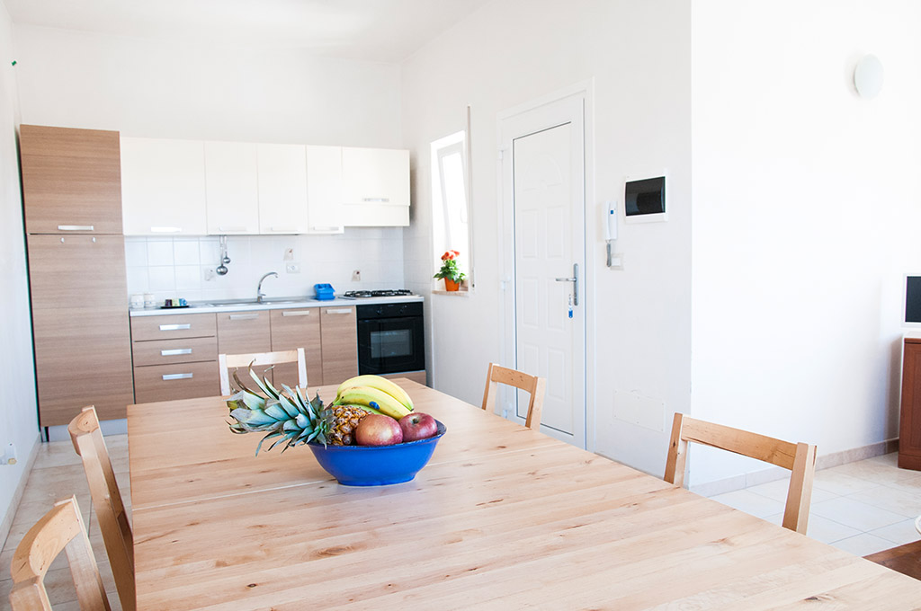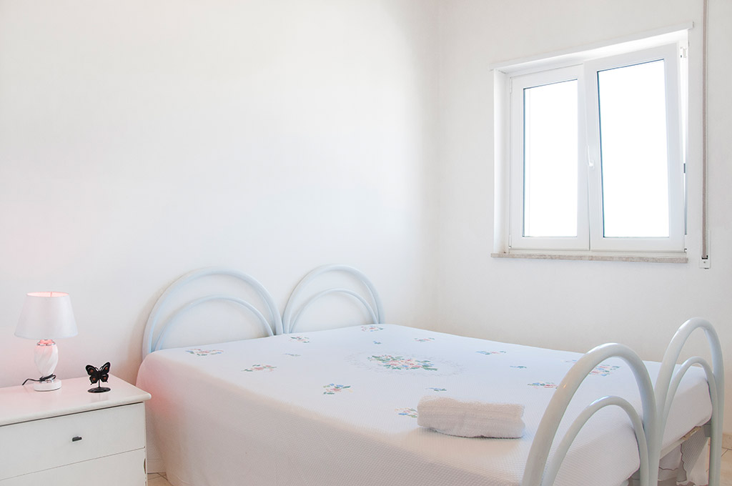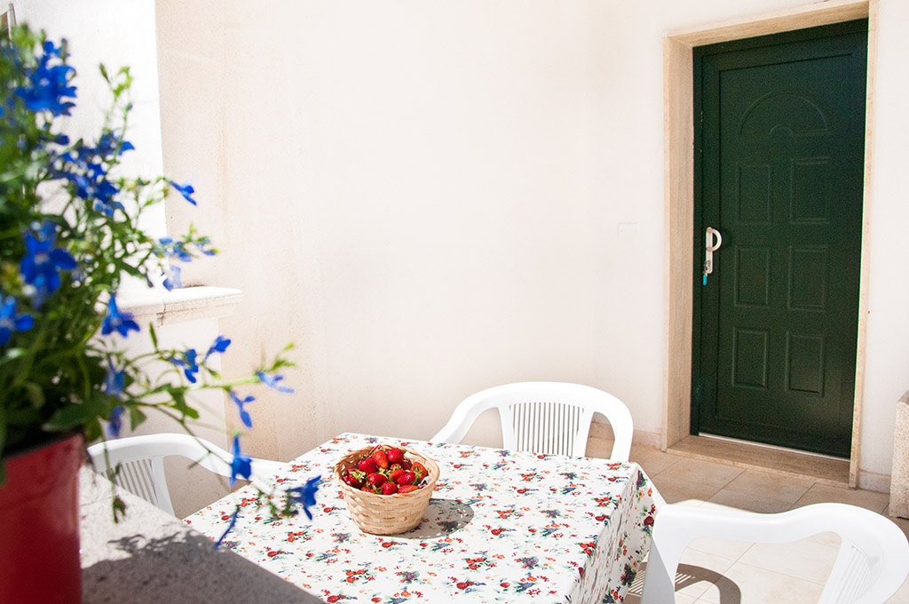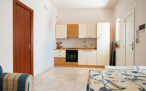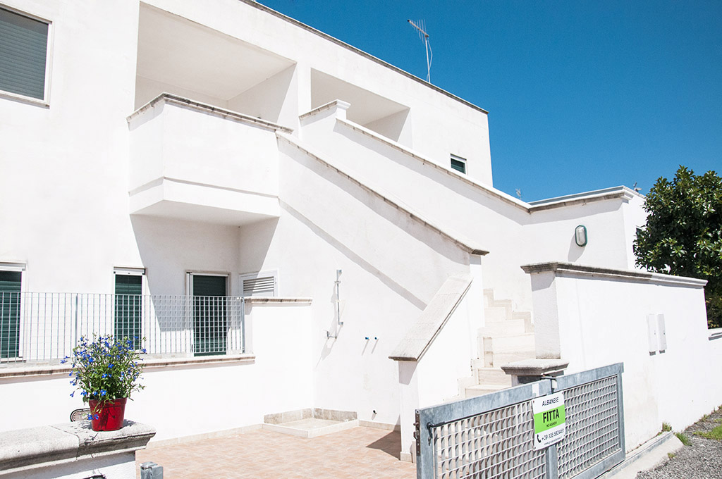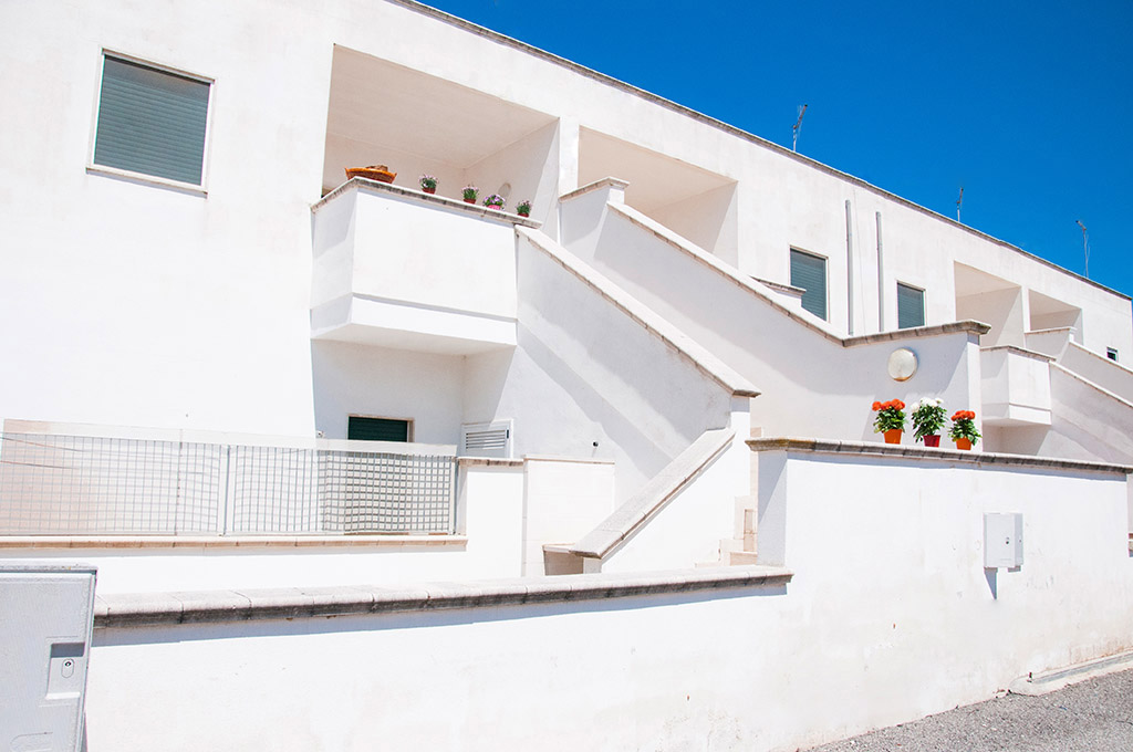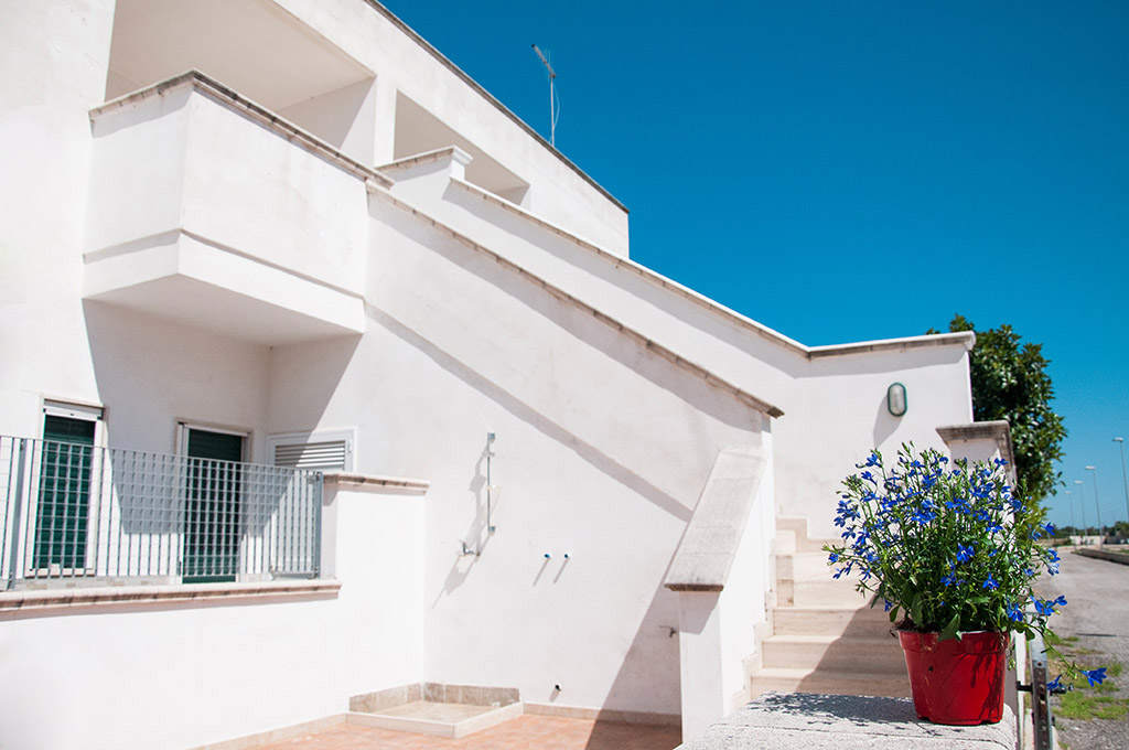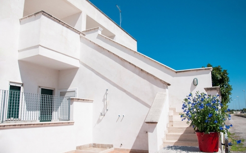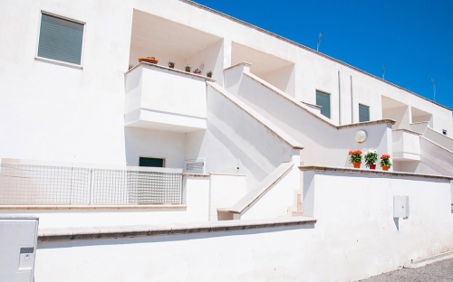 Terraced villas on the coastal strip of Carovigno (BR), in Pantanagianni, a seaside resort between the protected natural Oasis of Torre Guaceto and the "Costa Merlata" of Ostuni. In a private residence, comfortable houses 200 m from the sea - blue flag awarded by FEE (Foundation for Environmental Education). The villas are on the first floor with independent access and consist of three rooms of approx.70 m2 plus utilities. There is a living room with sofa/bed, fitted kitchen, small hall, bathroom with shower, double bedroom, bedroom with two single beds. The villa can accommodate up to a maximum of seven beds. Spacious equipped veranda. Private enclosed access from external ground floor area with parking spaces and shower. Included: split air conditioning in living room, TV and washing machine. Suitability: Babies admitted (cot and high chair included), animals admitted.