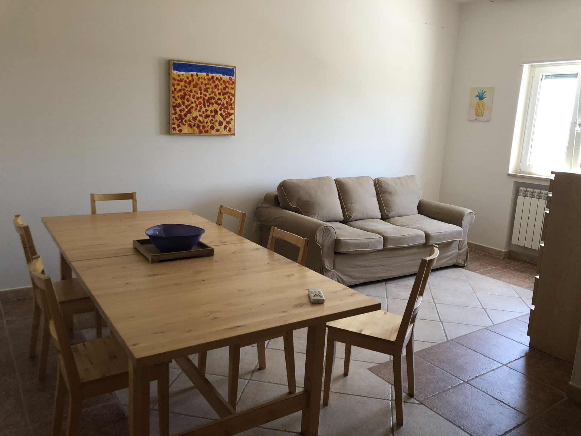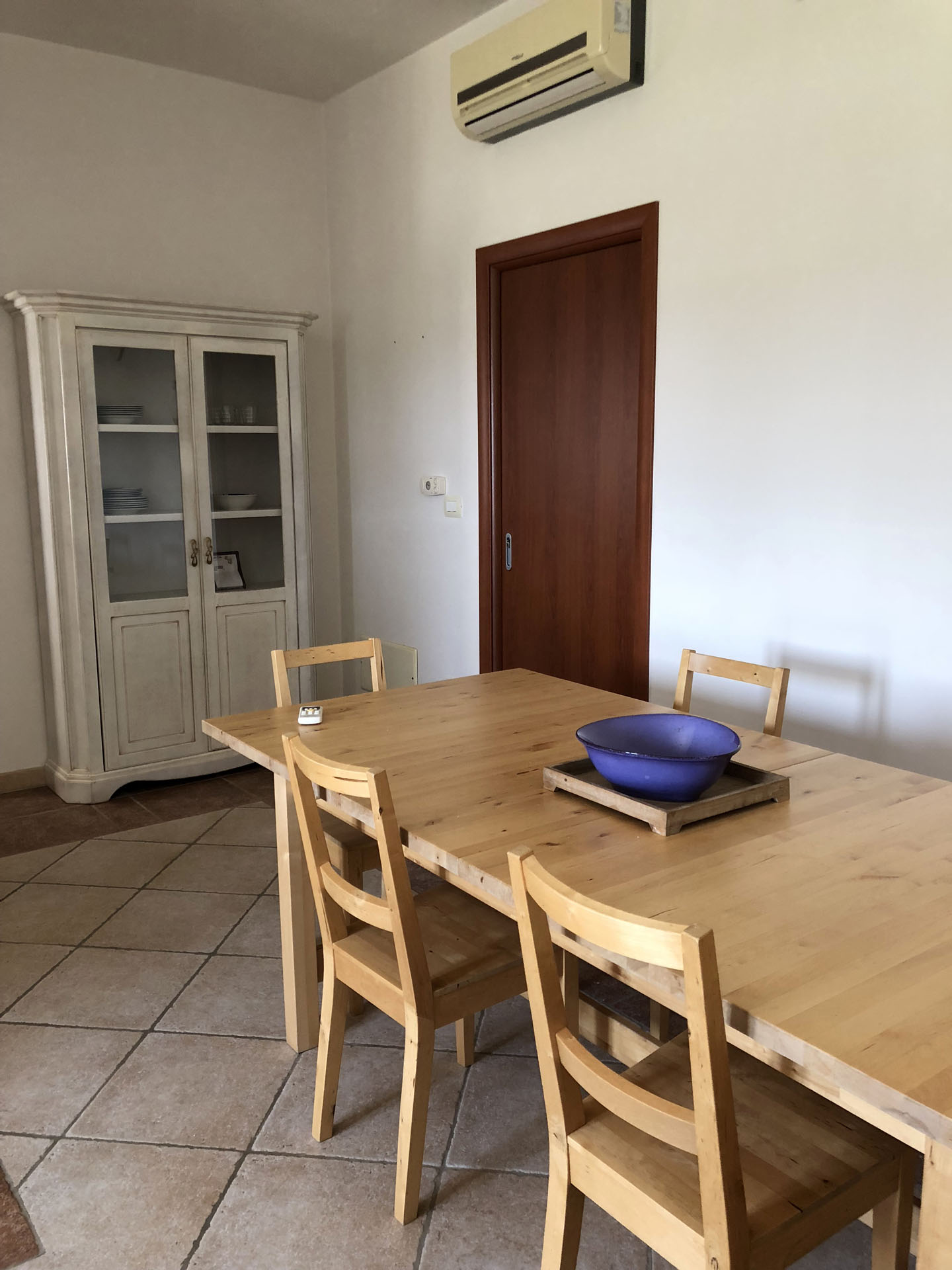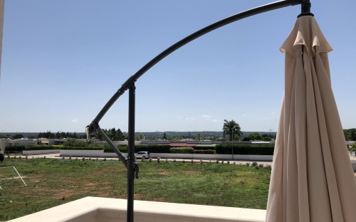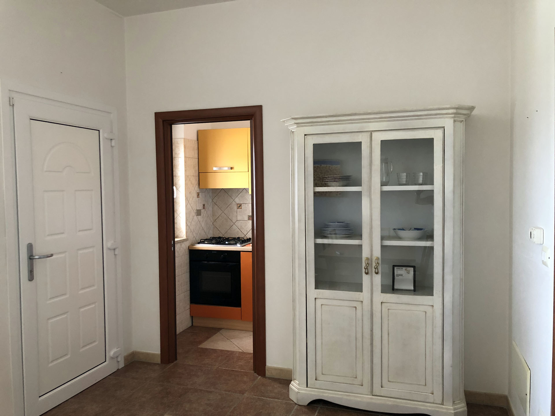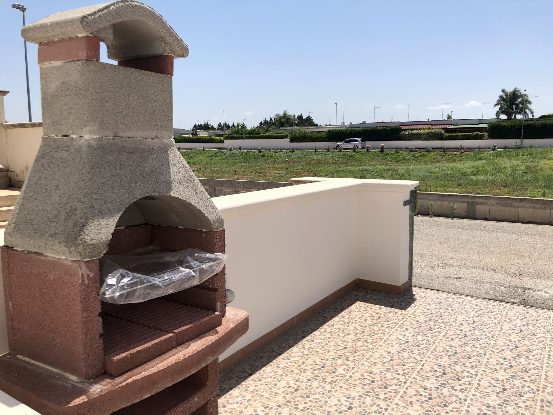 Terraced villas on the coastal strip of Carovigno (BR), in Pantanagianni, a seaside resort between the protected natural Oasis of Torre Guaceto and the "Costa Merlata" of Ostuni. In a private residence, comfortable houses 200 m from the sea - blue flag awarded by FEE (Foundation for Environmental Education). The villas are on the first floor with independent access and consist of three rooms of approx.70 m2 plus utilities. There is a living room with sofa/bed, fitted kitchen, small hall, bathroom with shower, double bedroom, bedroom with two single beds. The villa can accommodate up to a maximum of seven beds. Spacious equipped veranda. Private enclosed access from external ground floor area with parking spaces and shower. Included: split air conditioning in living room, TV and washing machine. Suitability: Babies admitted (cot and high chair included), animals admitted.