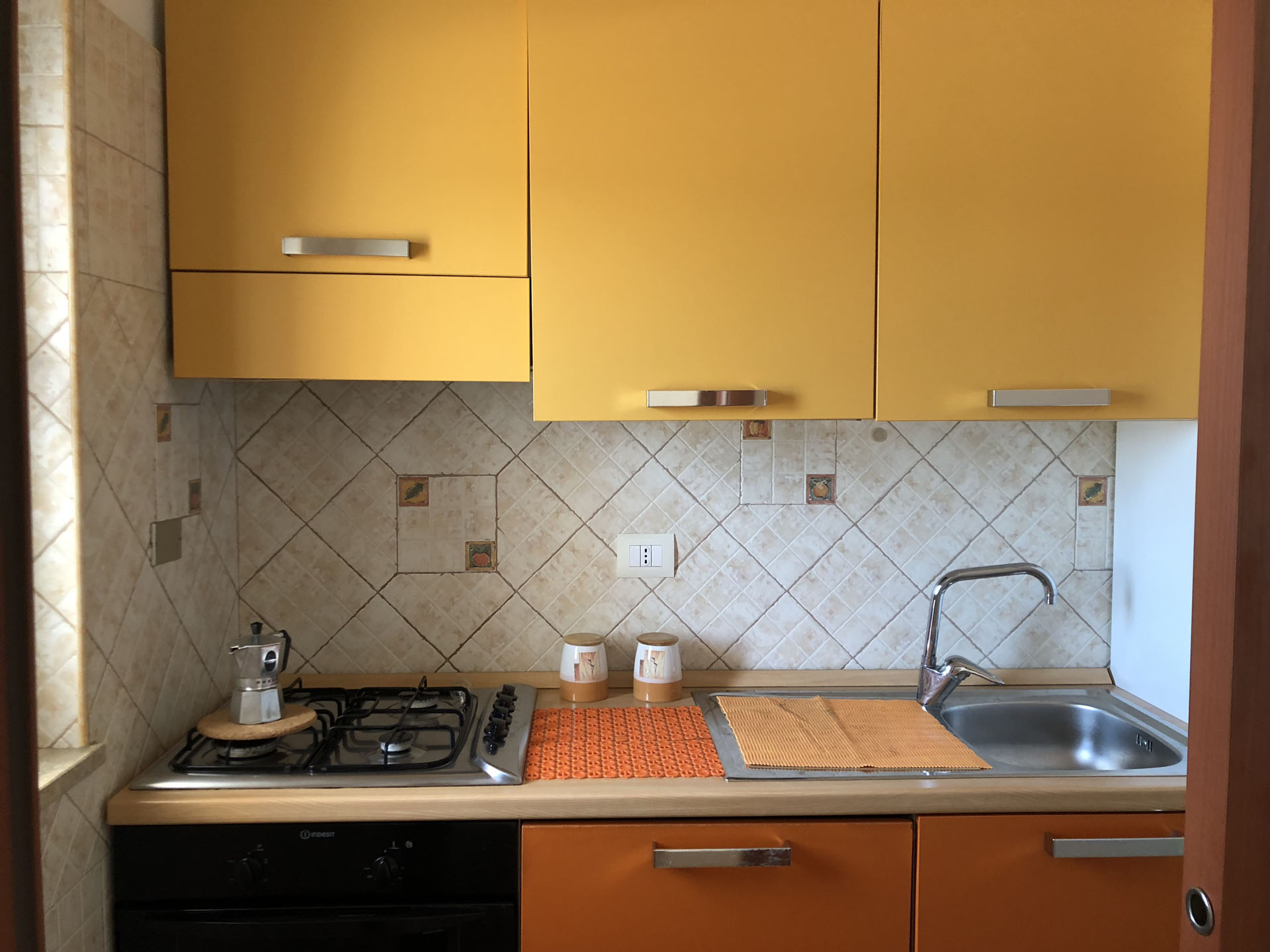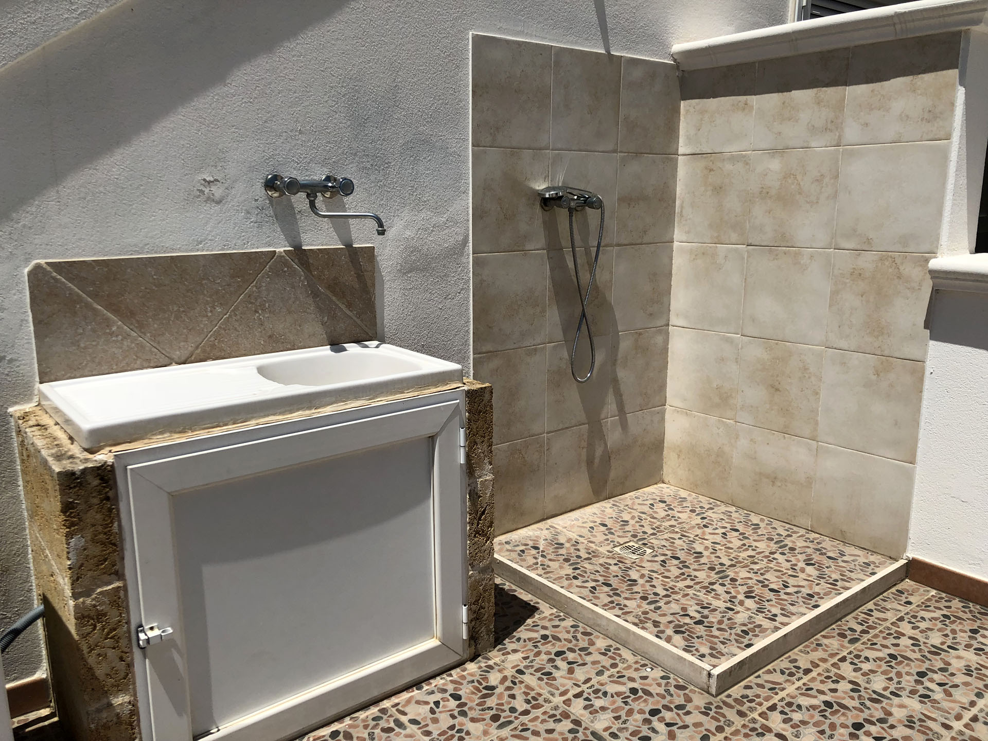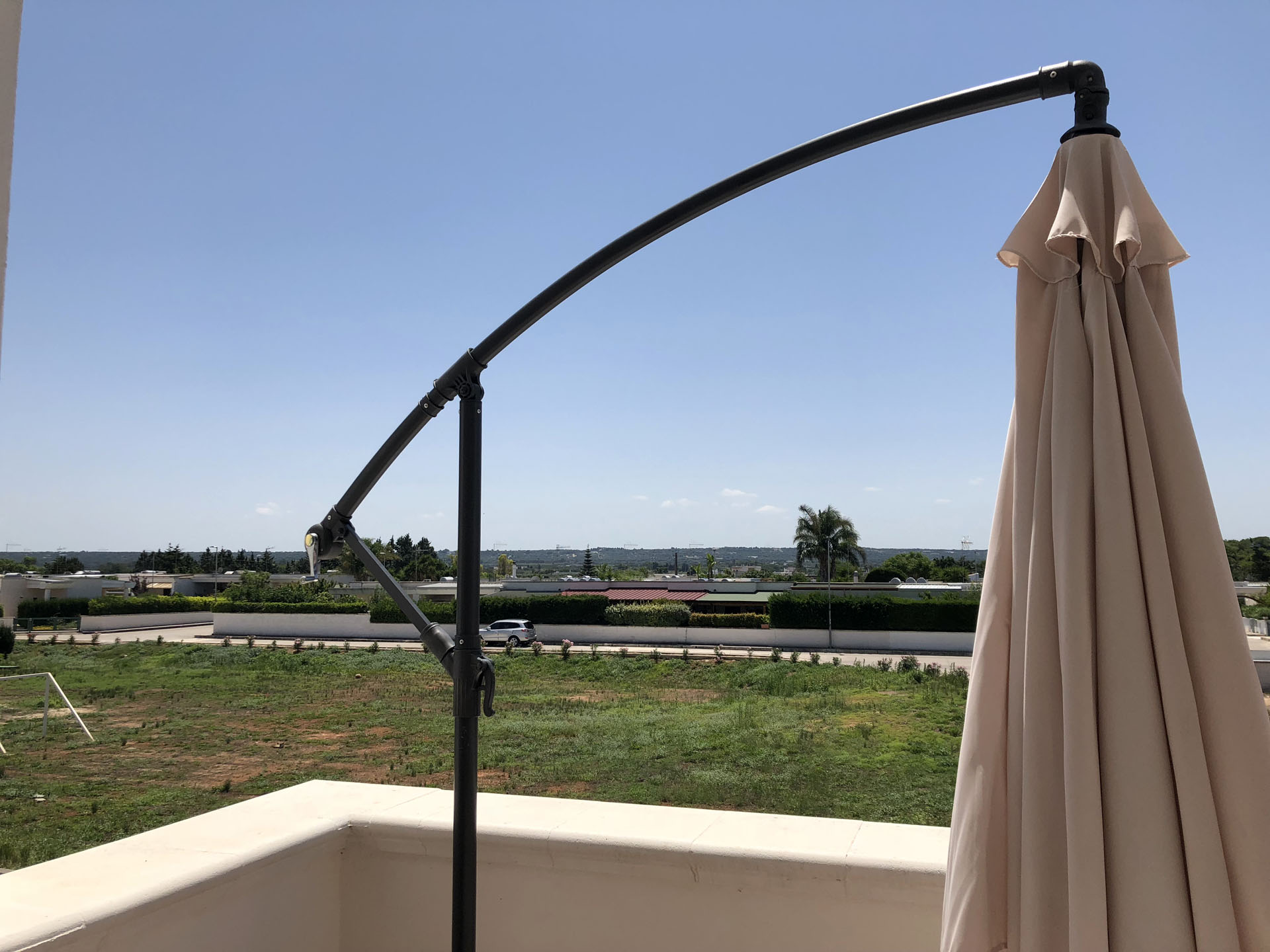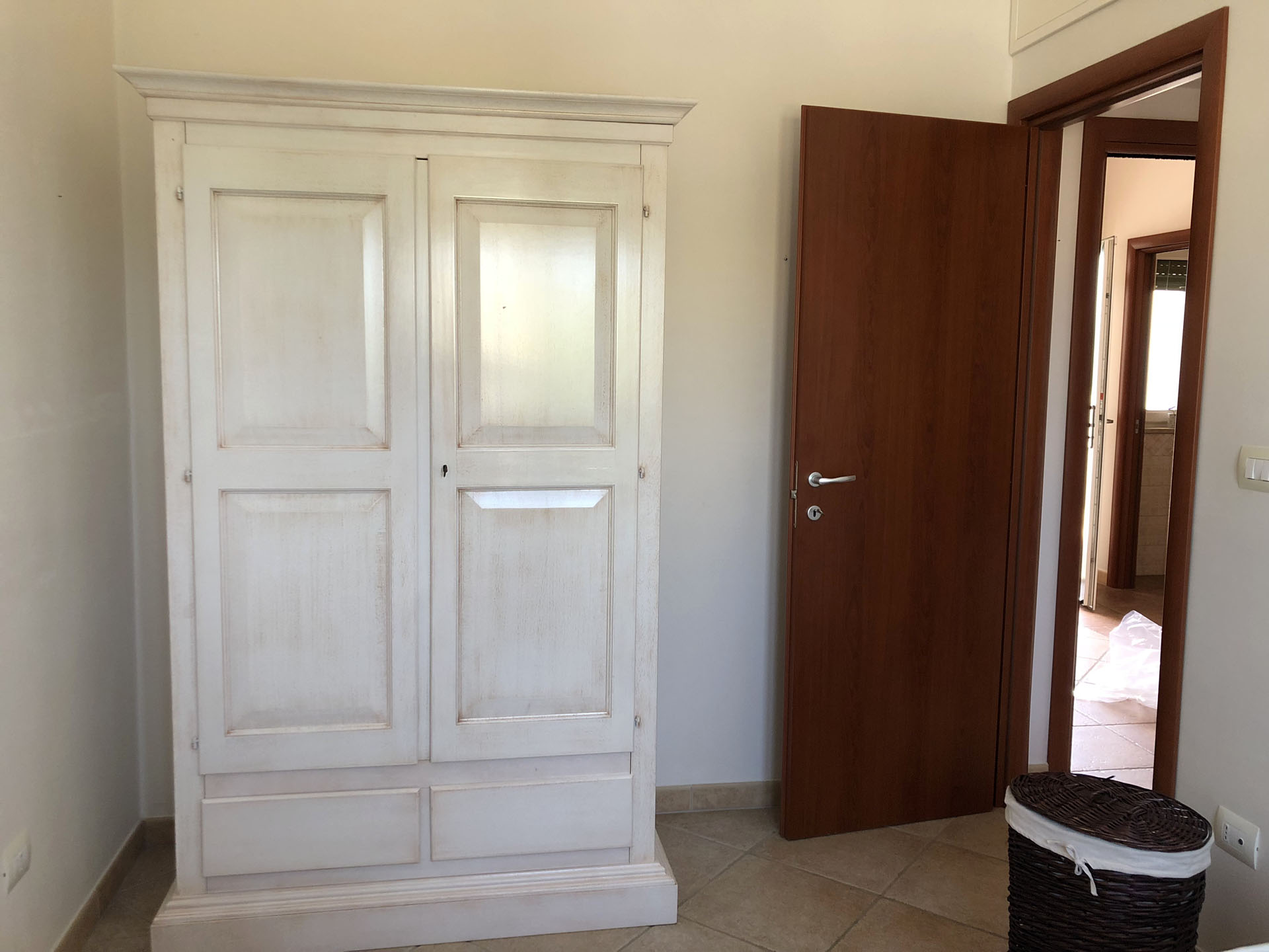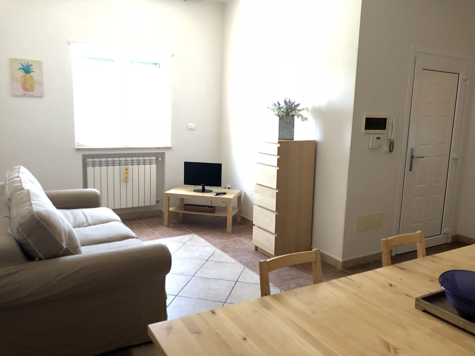 Terraced villas on the coastal strip of Carovigno (BR), in Pantanagianni, a seaside resort between the protected natural Oasis of Torre Guaceto and the "Costa Merlata" of Ostuni. In a private residence, comfortable houses 200 m from the sea - blue flag awarded by FEE (Foundation for Environmental Education). The villas are on the first floor with independent access and consist of three rooms of approx.70 m2 plus utilities. There is a living room with sofa/bed, fitted kitchen, small hall, bathroom with shower, double bedroom, bedroom with two single beds. The villa can accommodate up to a maximum of seven beds. Spacious equipped veranda. Private enclosed access from external ground floor area with parking spaces and shower. Included: split air conditioning in living room, TV and washing machine. Suitability: Babies admitted (cot and high chair included), animals admitted.