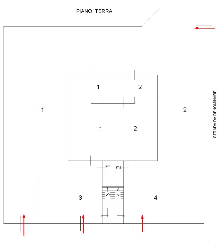 two apartments of approx. 70 m2 on the first floor with adjacent area of approx. 70 m2. Possibility of conversion to form a single independent housing unit on the ground floor, first floor or connecting the ground floor to the first floor by internal staircase. Sale of entire building either under construction or completed.