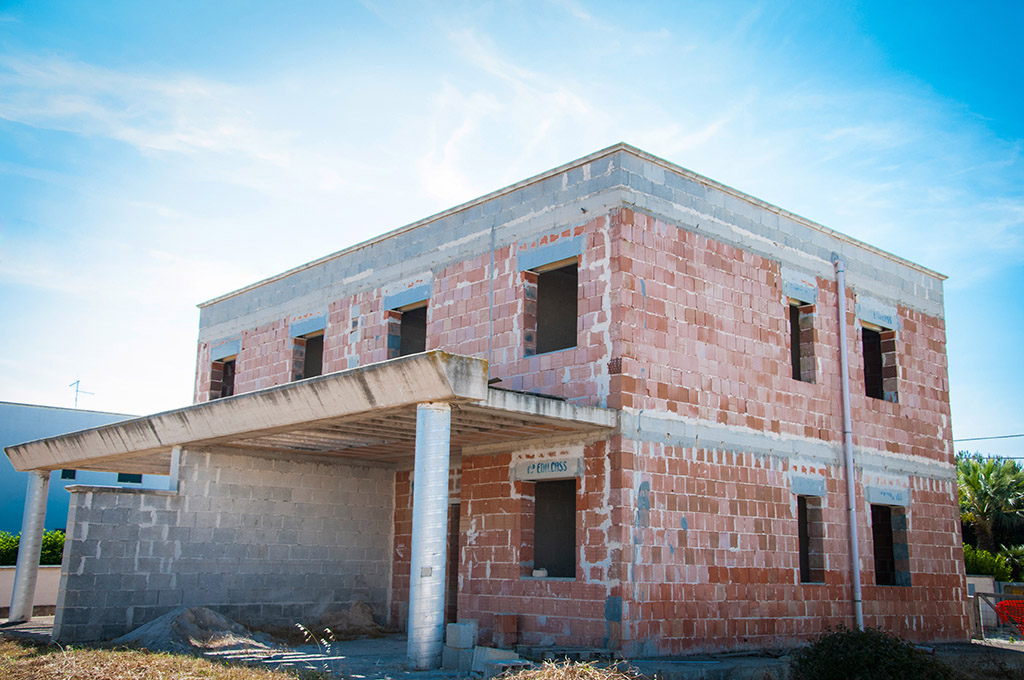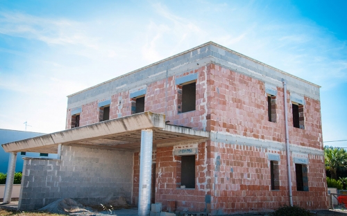 In Pantanagianni, Carovigno, 300 m from the sea, housing under construction. Planned on two levels: two apartments of approx. 80 m2 on the ground floor with adjacent area of approx. 300 m2;