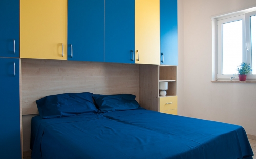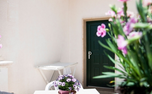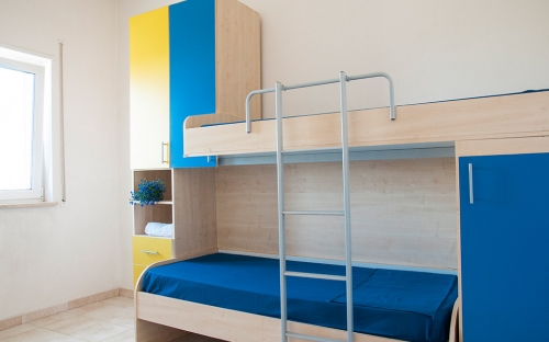 Terraced villas on the coastal strip of Carovigno (BR), in Pantanagianni, a seaside resort between the protected natural Oasis of Torre Guaceto and the "Costa Merlata" of Ostuni. In a private residence, comfortable houses 200 m from the sea - blue flag awarded by FEE (Foundation for Environmental Education). The villas are on the first floor with independent access and consist of three rooms of approx.70 m2 plus utilities. There is a living room with sofa/bed, fitted kitchen, small hall, bathroom with shower, double bedroom, bedroom with two single beds. The villa can accommodate up to a maximum of seven beds. Spacious equipped veranda. Private enclosed access from external ground floor area with parking spaces and shower. Included: split air conditioning in living room, TV and washing machine. Suitability: Babies admitted (cot and high chair included), animals admitted.